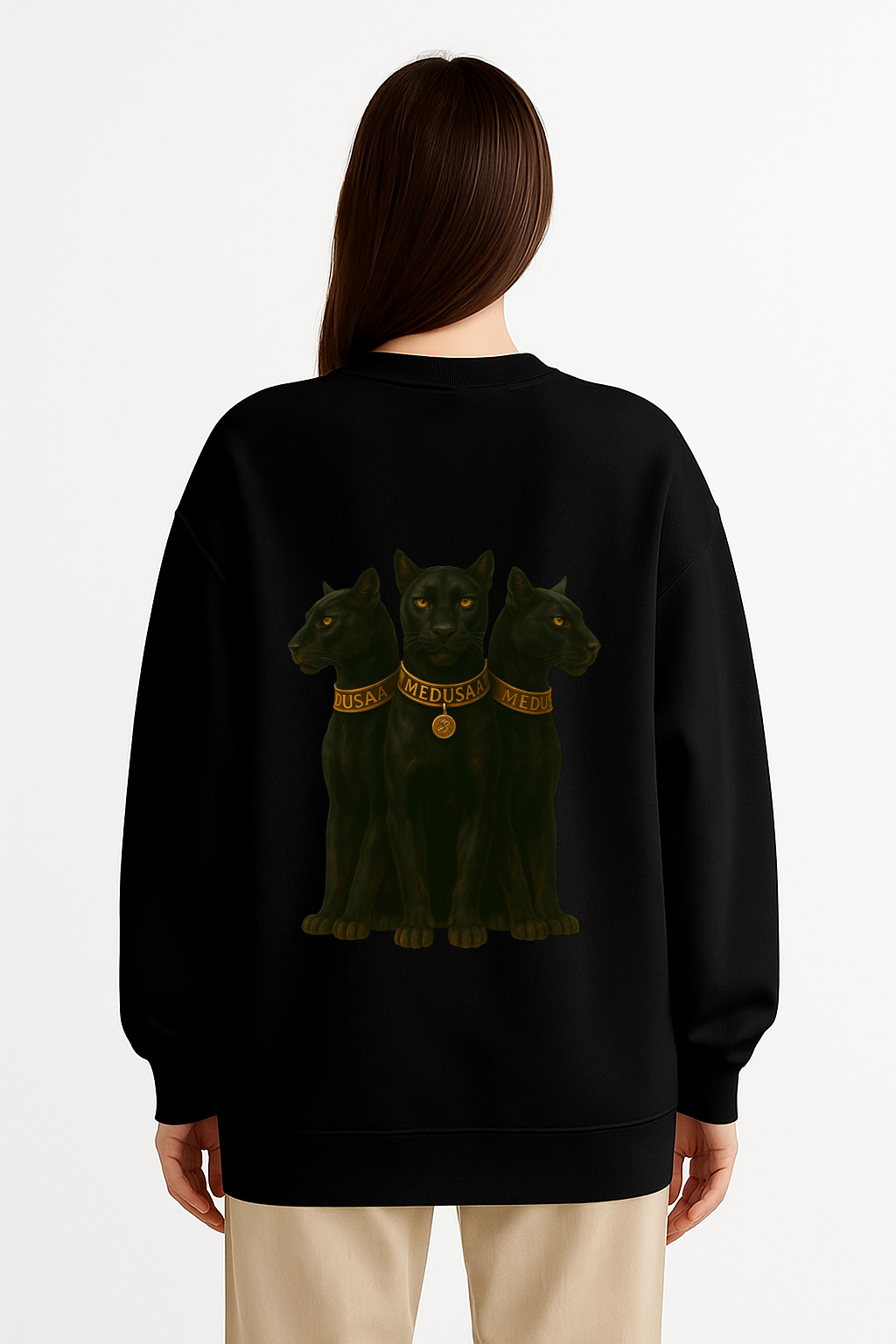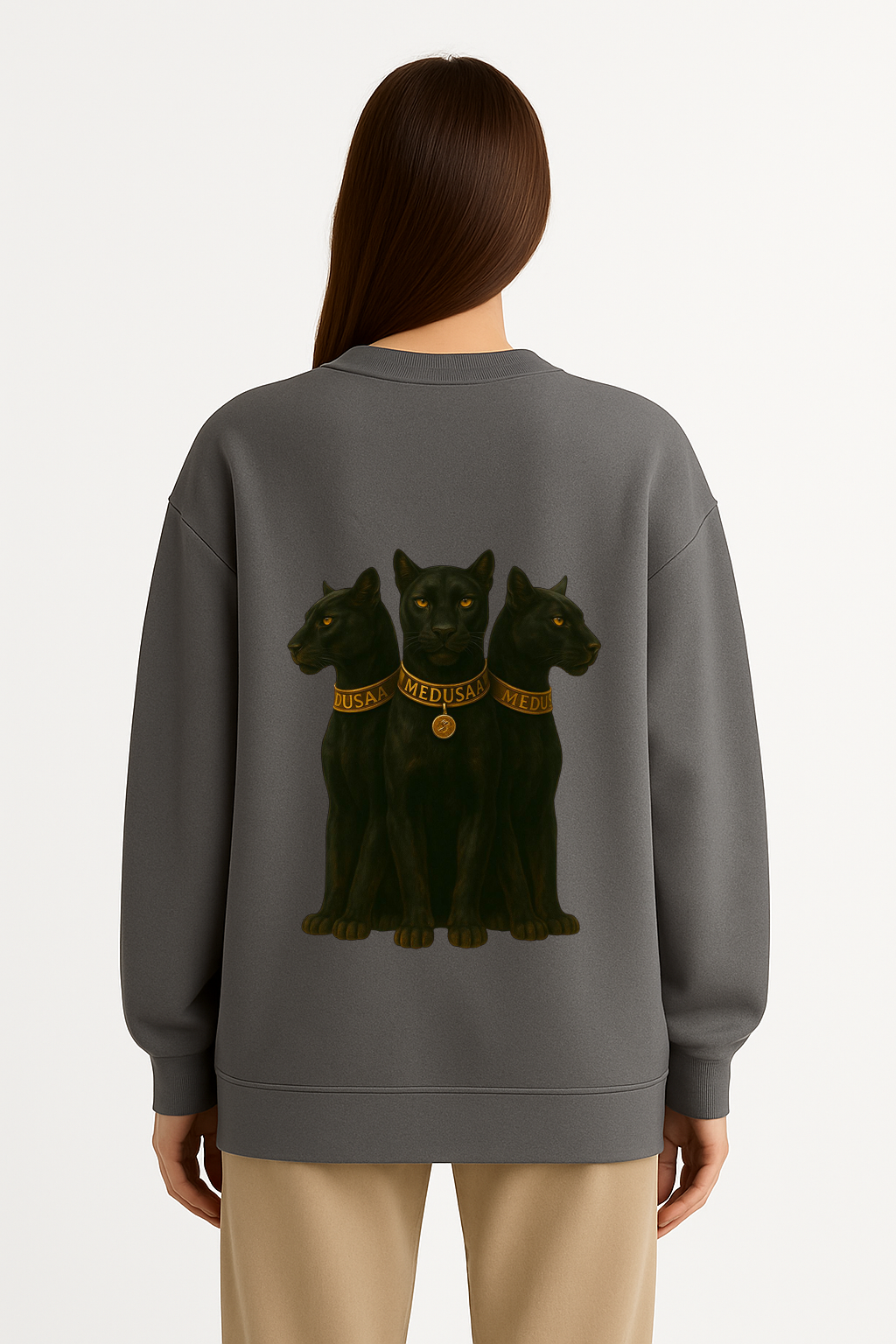 Αγριάδα, δύναμη και απόλυτο στυλ. Η νέα μπλούζα του Medusaa με τρεις μαύρους πάνθηρες αποπνέει ενέργεια και αυτοπεποίθηση. Ένα statement κομμάτι για όσους κινούνται αθόρυβα, αλλά επιβάλλονται με την παρουσία τους.